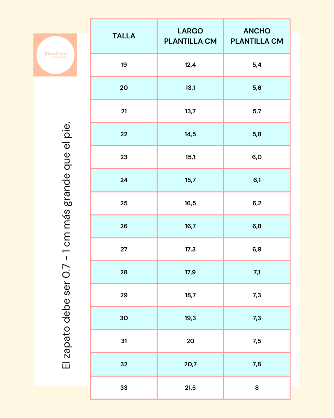 Es empfiehlt sich, bei der Fußlänge zwischen 0,8 und 1,2 cm und bei der Breite 0,3 – 0,5 cm Spielraum zu lassen.