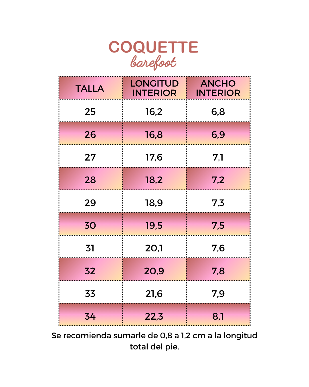 - Thin sole, approximately 5 mm , that encourages conscious and stable walking.